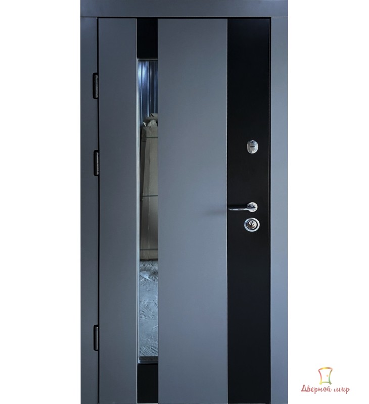 Фурнітура: 3 зовнішні петлі, антизрізи, ручка на розетті, утоплена броненакладка, терморозрив на рамі (пробка 4 мм), ексцентрик, поріг з нержавіючої сталі