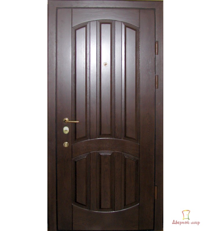 Каркас полотна складається з гнутого профілю, виготовленого з 2-х мм сталі. Полотно має лицьовий лист металу товщиною 2 мм і три П-подібні ребра жорсткості, що робить двері непідвладними механічним впливам ззовні. Каркас полотна покривається декоративними накладками з ясена та інших порід натурального дерева товщиною 16 мм. Усередині полотно утеплюється теплоізолятором IZOTOPRAK. Це робить наші двері звуко- та теплоізоляційними.