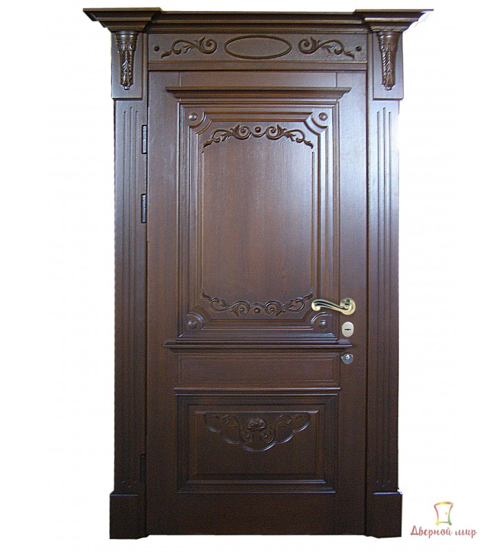 Каркас полотна складається з гнутого профілю, виготовленого з 2-х мм сталі. Полотно має лицьовий лист металу товщиною 2 мм і три П-подібні ребра жорсткості, що робить двері непідвладними механічним впливам ззовні. Каркас полотна покривається декоративними накладками з ясена та інших порід натурального дерева товщиною 16 мм. Усередині полотно утеплюється теплоізолятором IZOTOPRAK. Це робить наші двері звуко- та теплоізоляційними.